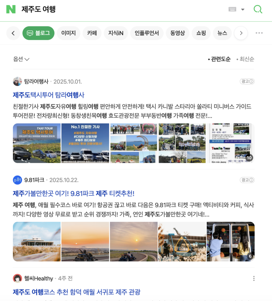 • 네이버 인플루언서: 이들의 주 무대는 ‘키워드 챌린지’와 ‘스마트 블록’의 인기 주제 영역입니다. 경쟁이 치열한 메인 키워드(예: 제주도 여행, 아이폰 17 후기)를 검색했을 때, 최상단에 노출되는 탭은 대부분 인플루언서들의 콘텐츠로 채워집니다. 네이버 검색 공식 블로그(2023)에 따르면, 에어서치(AiRSearch) 알고리즘은 창작자의 전문성을 우대하여 스마트 블록을 구성합니다.